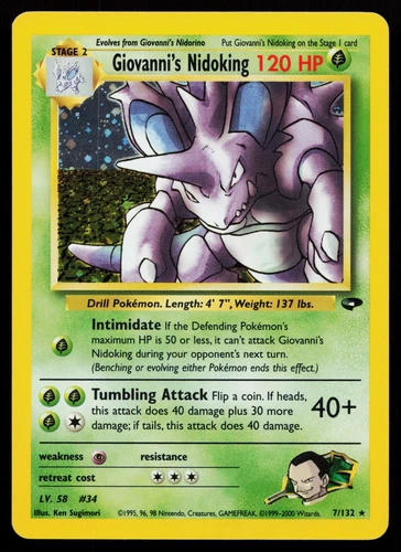 Pokémon TCG 1995 Giovanni’s Nidoking Gym Challenge Stage 2 #7/132 Holo Card