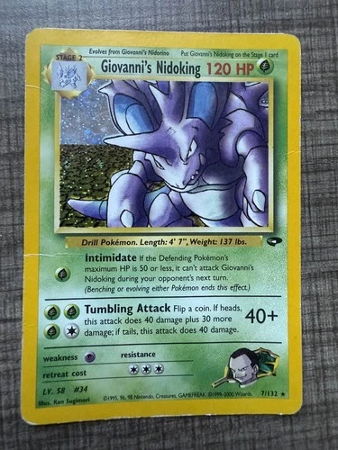 1995-2000 Pokémon Card: Giovanni’s Nidoking Rare Holo Finish 7/132 UNGRADED