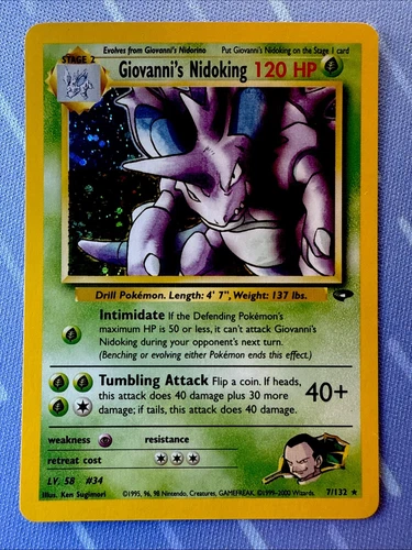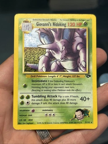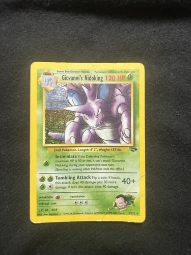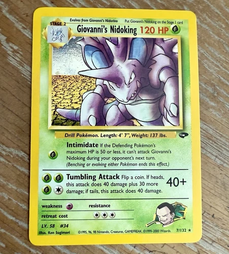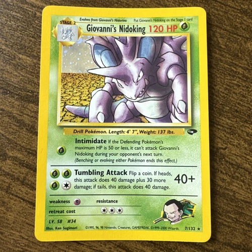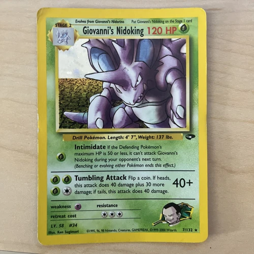 1995-2000 Pokémon Card: Giovanni’s Nidoking Rare Holo Finish 7/132 UNGRADED
