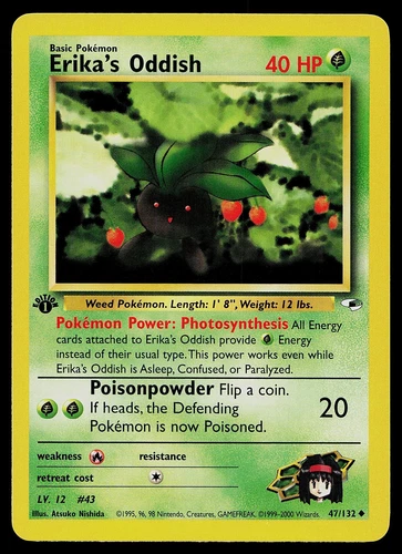 Erika’s Oddish 1st Edition Gym Heroes 47/132 WOTC Vintage Pokemon