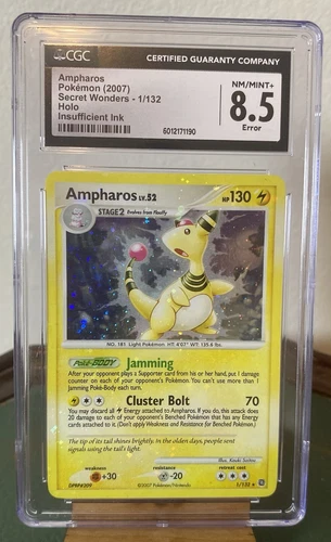 CGC 8.5 NM/MINT+ ERROR Ampharos 1/132 Secret Wonders Holo Pokemon Insufficient
