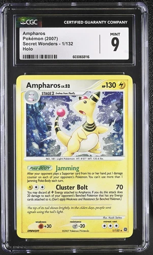 CGC 9 MINT Ampharos 2007 Secret Wonders 1/132 Holo Pokemon Card psa