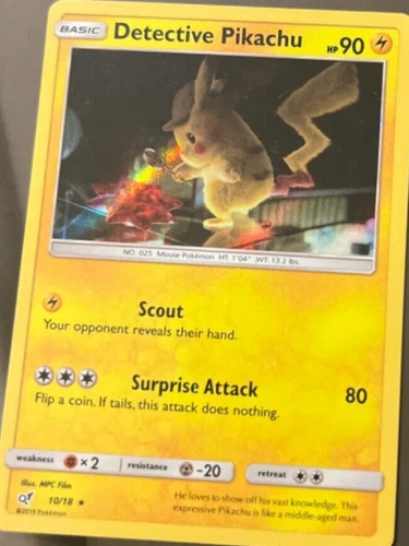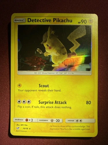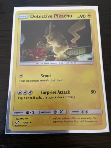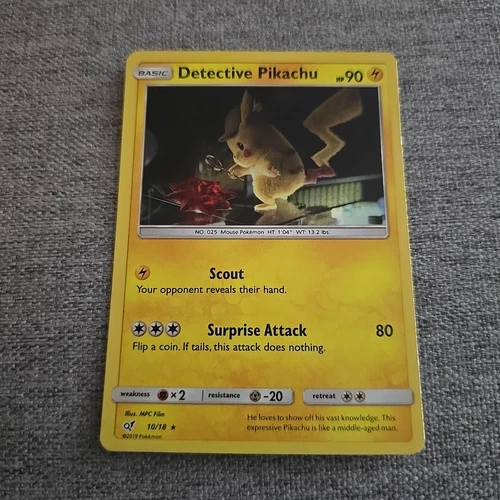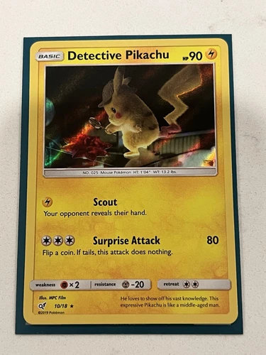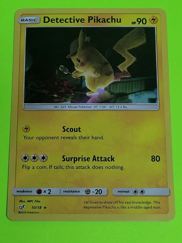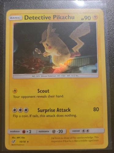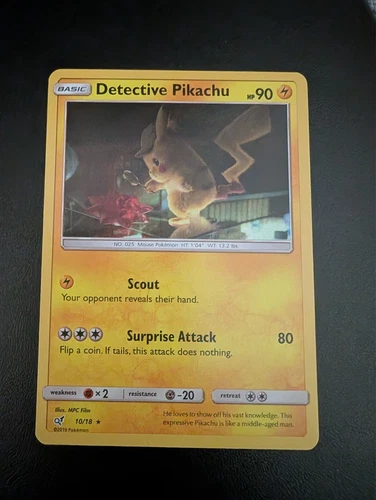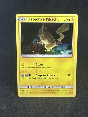 Detective Pikachu HOLO RARE 10/18 Detective Pikachu PROMO Pokemon Card SCOUT