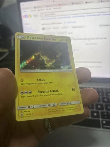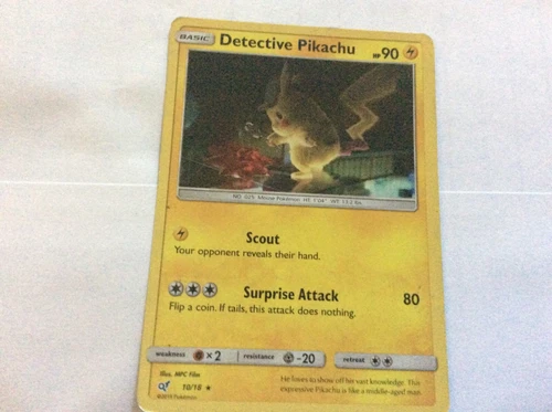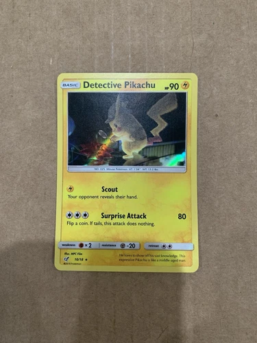 Detective Pikachu 10/18 HOLO Rare Sun & Moon Detective Pikachu Pokemon Card 2019
