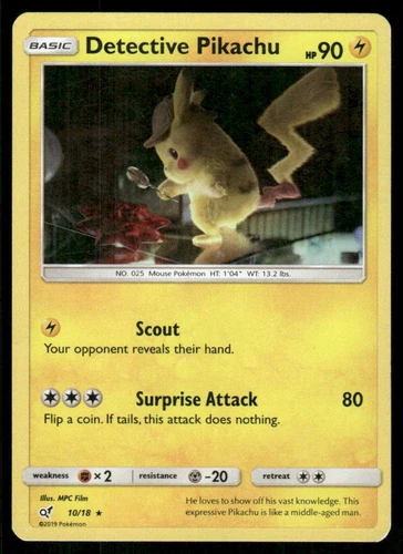 Detective Pikachu Pokemon Card - Detective Pikachu 10/18 - Holo Rare