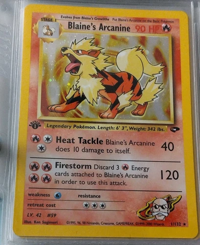 CGC 9.5 MINT+ Blaine's Arcanine 2000 Gym Challenge 1/132 Holo Pokemon Card psa