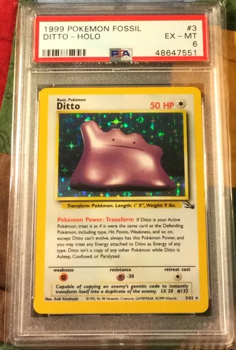 PSA 6 EX-MT Condition Pokémon Card! 1999 WOTC Holo Rare *Ditto* #3/62 Fossil Set