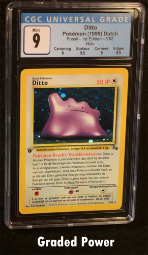 PG Grade 9 MT Condition Ditto 3/62 1st Edition Pokemon TCG Fossil Set Holo Rare