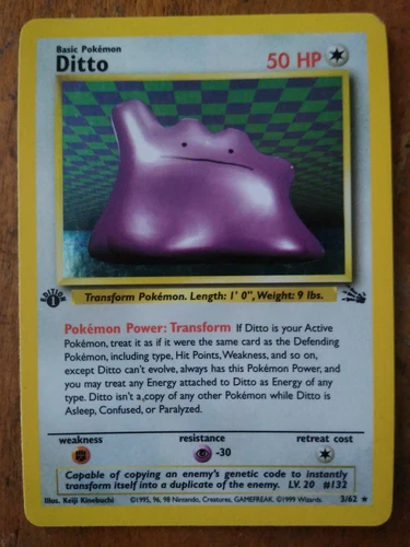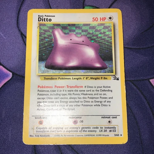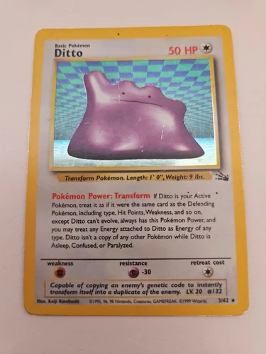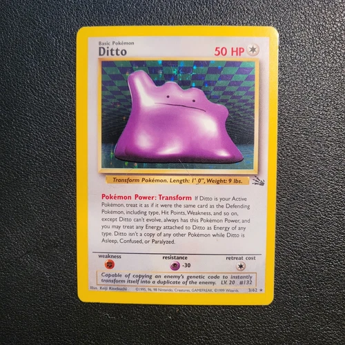 pokemon tcg ditto 3/62 holo foil rare pokemon fossil 1999