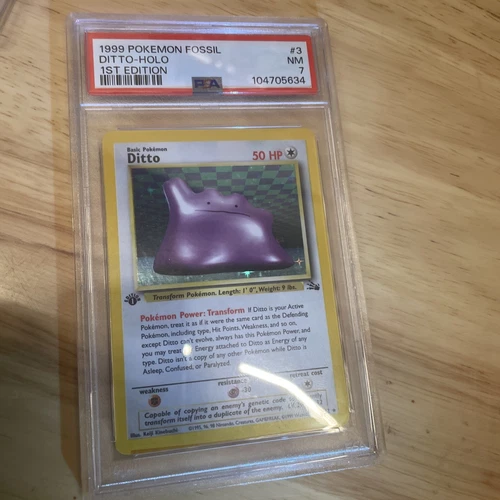 1999 POKEMON FOSSIL #3 3/62 1ST EDITION DITTO HOLO NM PSA 7