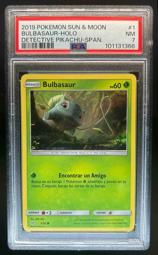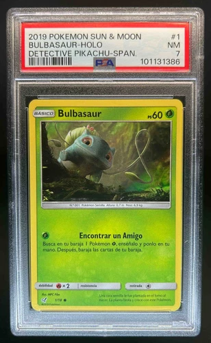 2019 Pokemon Sun & Moon Detective Pikachu Bulbasaur Holo #1/18 PSA 7
