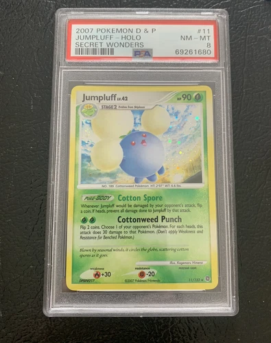 Pokemon PSA 8 NM-Mint D&P Secret Wonders JUMPLUFF 11/132 - Holo - Holo Bleed