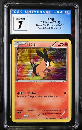 CGC 7 NEAR MINT Tepig BW02 Black & White Black Star Promos Holo Pokémon TCG 2011