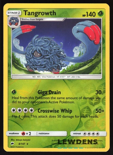 8/147 Tangrowth Reverse Holo Sun & Moon Burning Shadows 2017 Pokémon TCG Card