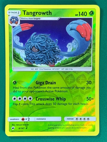 Tangrowth - 8/147 - Rare - Reverse Holo NM, English Pokemon Sun & Moon Burning S