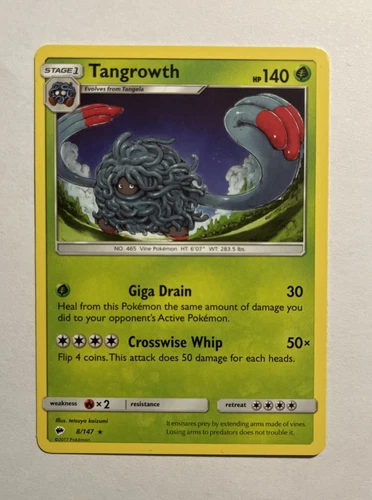 2017 Pokemon Burning Shadows Tangrowth Reverse Holo Rare Card 8/147 NM