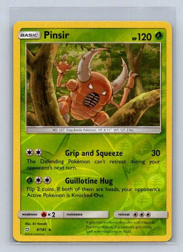 Pokemon Card Pinsir 9/181 Team Up Reverse Holo Rare Near Mint