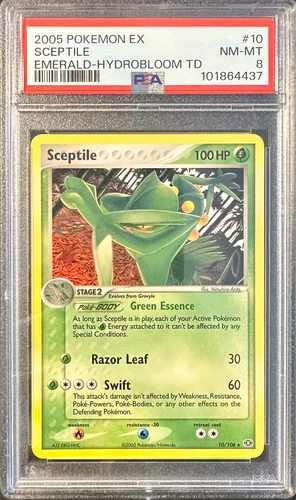 PSA 8 Sceptile 10/106 EX Emerald Reverse Holo Rare