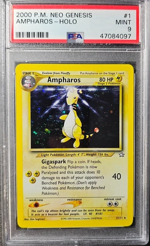 PSA 9 MINT Ampharos 1/111 Holo Neo Genesis 2000 Pokemon Card