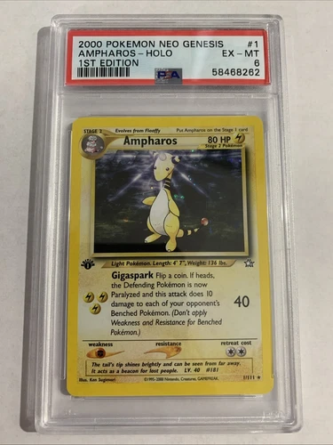 2000 Pokemon 1st edition Neo Genesis Ampharos holo 1/111 PSA 6 Swirl #1