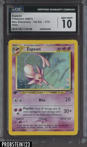 PSA 10 Unlimited Neo Discovery Holo Espeon 1/75 in GEM MINT/ERROR Card