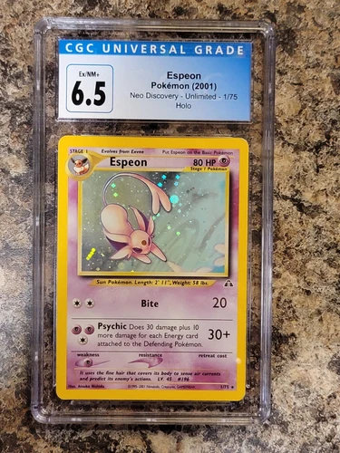 CGC 6.5 Espeon Pokemon 2001 Neo Discovery Unlimited 1/75 Holo Card PSA