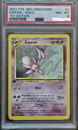 Pokemon Cards: 1st Edition Neo Discovery Rare Holo: Espeon 1/75: PSA 8