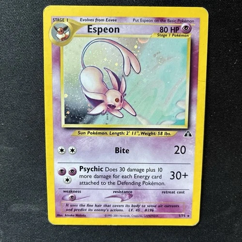 Espeon 1/75 Pokémon Neo Discovery Holo – MP/HP – Swirl Holo!
