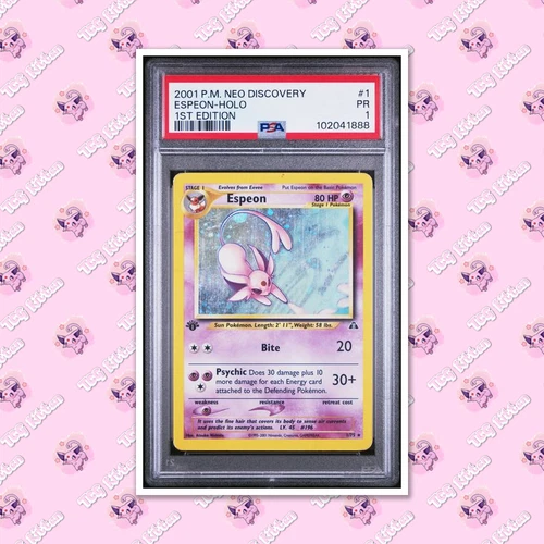 PSA 1 Espeon 1/75 1st Edition Neo Discovery 2001 Holo TCGKITTEN