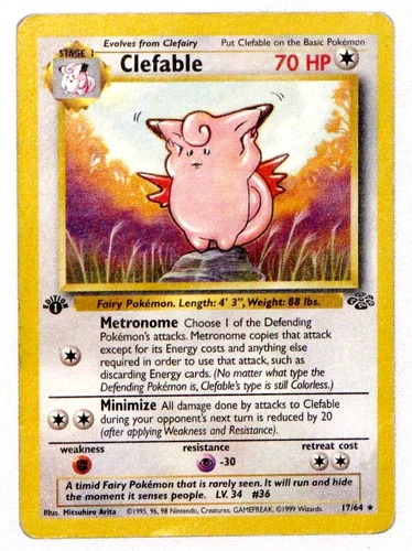 Pokémon TCG Clefable Jungle 17/64 Regular 1st Edition Rare