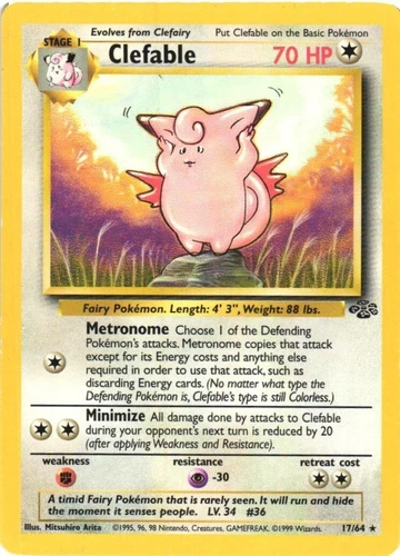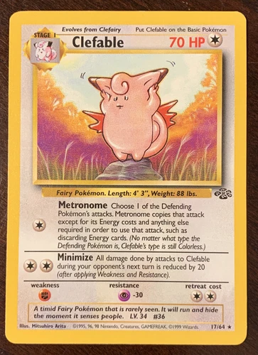 Clefable 17/64 Jungle Set Rare 1999 Pokémon Game Card WOTC