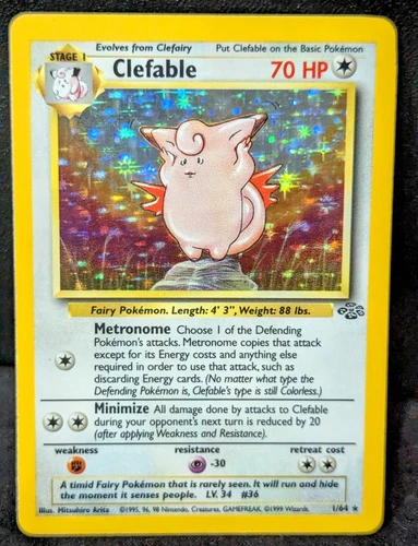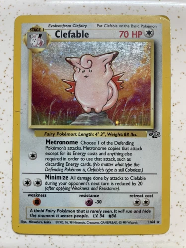 Pokémon TCG Clefable 1/64 Jungle Set Holo Rare Unlimited 1999 WOTC