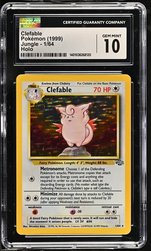 CGC 10 GEM MINT Clefable 1999 Jungle - Unlimited 1/64 Holo Rare Pokemon Card psa