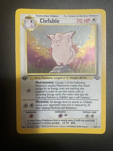 1999 Pokemon TCG Clefable Jungle 1st Edition Holo Rare 1/64 Collectible Vintage