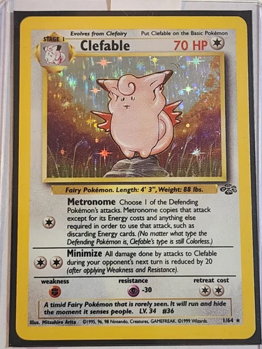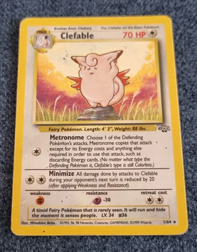Pokémon TCG: Rare Clefable 1/64, Jungle Set, 1999 WoTC, Unlimited, Misprint #1