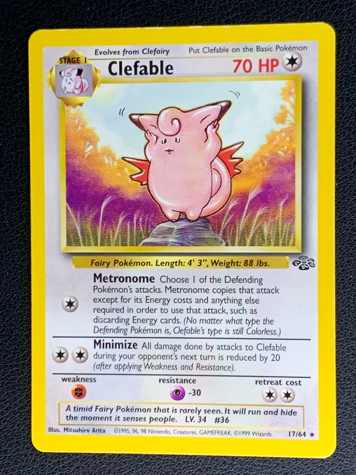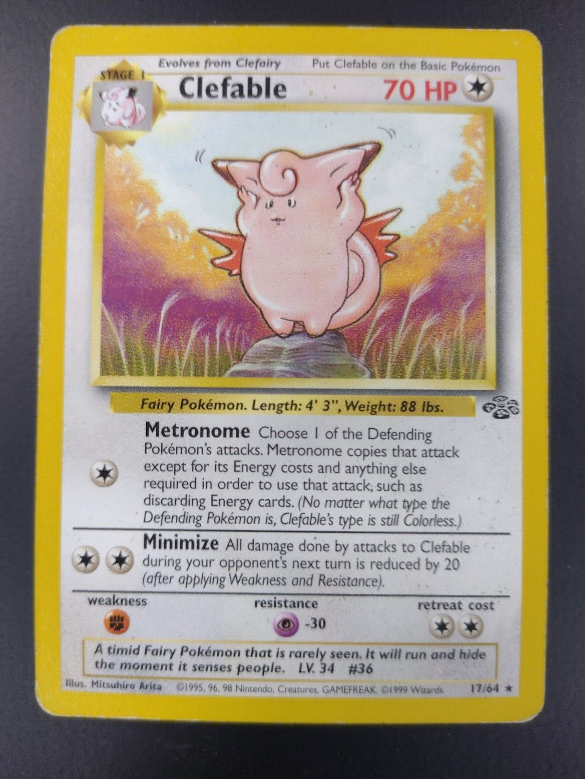 PL (Unlimited) Pokemon CLEFABLE Card JUNGLE Set 17/64 WOTC Non-Holo Rare
