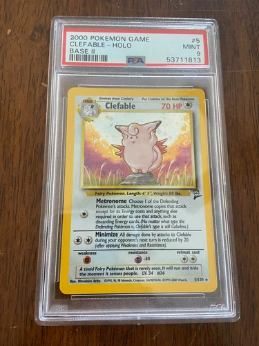 2000 Pokemon Base Set 2 Clefable HOLO Foil PSA 9 graded 5/130 Mint FRESH SLAB