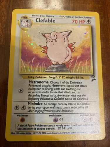 Pokemon Card Clefable 5/130 Holo Base Set 2 WOTC Holo Rare Played 2