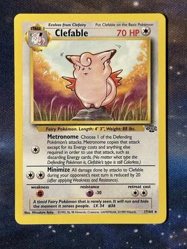 * Pokémon TCG Clefable Jungle 17/64 Regular Unlimited Rare 1999 Vintage LP