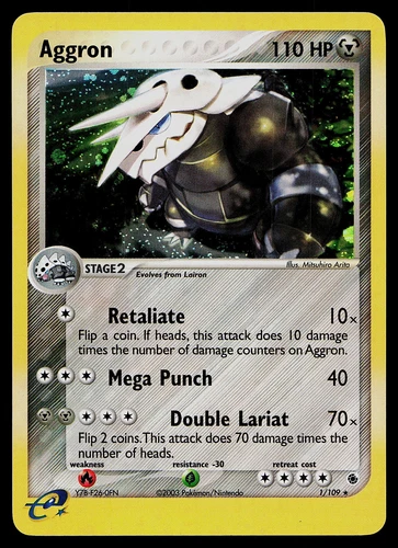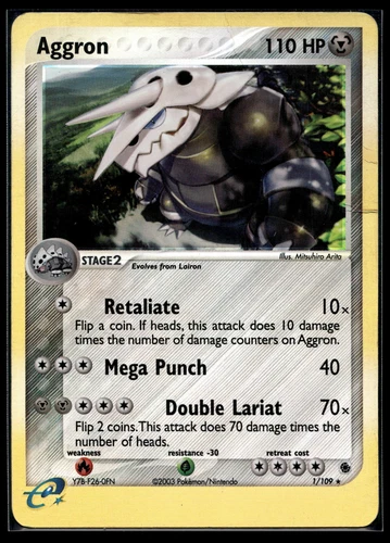Aggron ?? 1/109 - 2003 Ruby and Sapphire - Reverse Holo Rare - Pokemon Card TCG
