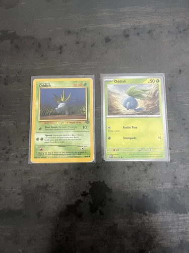 Oddish 58/64. Year 1999.., Slightly Played Oddish 001/197. Year 2023. NM.