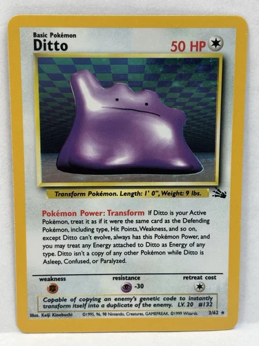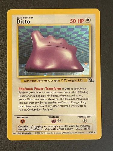 Pokemon Ditto Unlimited Fossil 3/62 Vintage Holo Rare MP/HP