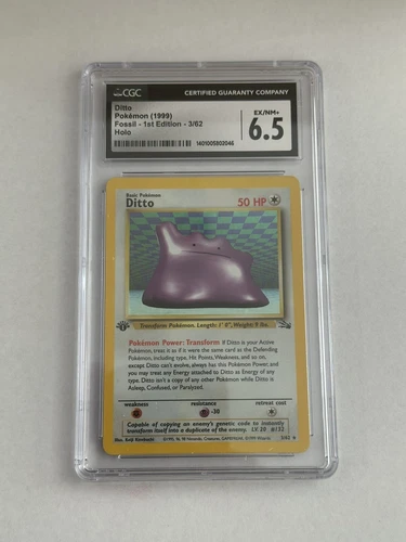 Pokémon Card Ditto 3/62 Holo Rare 1st Edition CGC 6.5 Ex/NM+ Fossil Graded