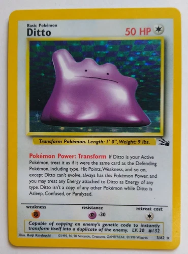 Pokemon Vintage - Ditto 3/62 Fossil set - Holo - 1999 - Never Played.