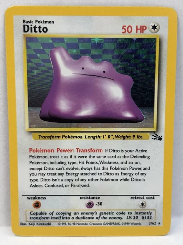 Ditto Holo 3/62 Fossil Holo WotC Pokemon TCG