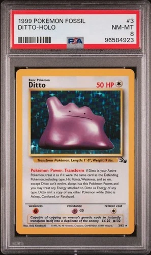 Pokémon TCG WOTC Ditto Fossil 3/62 Unlimited Holo Rare PSA 8 Near Mint - Mint