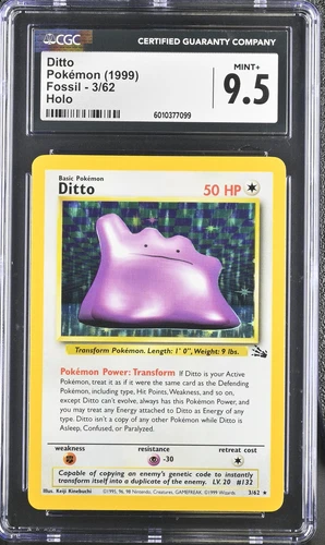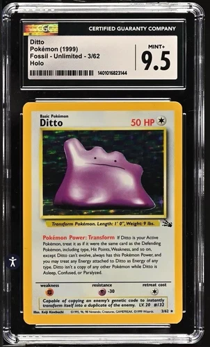 CGC 9.5 MINT+ Ditto 1999 Fossil 3/62 Holo Pokemon Card psa