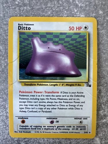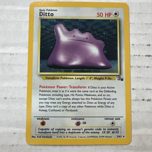 Ditto 3/62 Fossil Unlimted Holo Rare MP/LP Vintage Pokemon Original Set