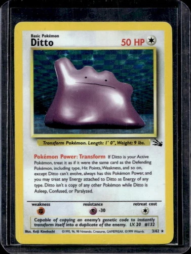 Pokemon Ditto Unlimited Fossil 3/62 Vintage Holo Rare MP/HP