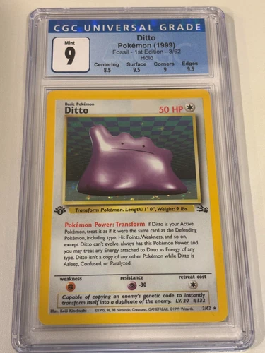 1999 POKEMON DITTO 1ST EDITION FOSSIL HOLO 3/62 CGC 9 MINT